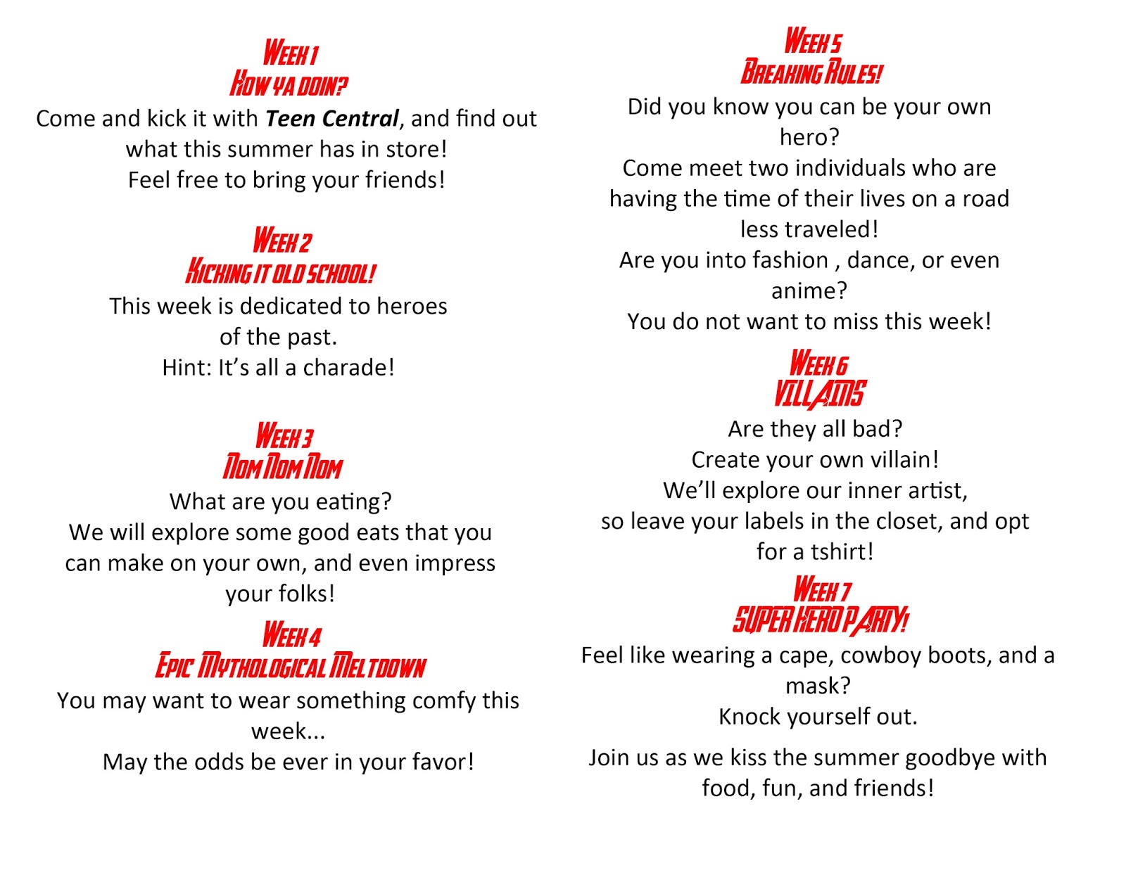 Summer Reading Schedule for Teens!!!