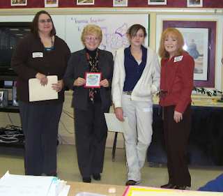 Left to right: Tonya Oswalt (YA Services), Carolyn Grimsley (Friends of the Library Board), Brandy Doyle Contest Winner) and Vickie Hardin (Outreach Specialist)